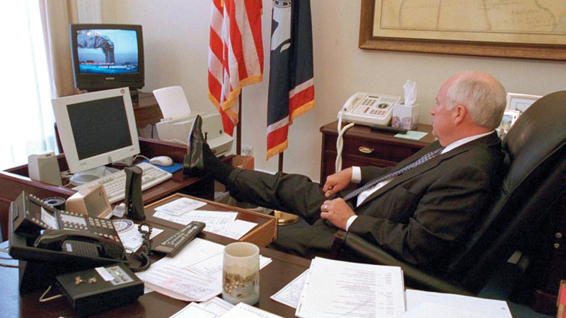 ليس فقط شكلاً، وإنما طريقة المشي والوقوف، وحتى طريقة الحديث والصوت لذلك السياسي الأصلع المراوغ، الذي حكم الولايات المتحدة من خلف رئيس أميركي قليل الخبرة اسمه جورج دبليو بوش، حسب الفيلم، في العقد الأول من هذا القرن.