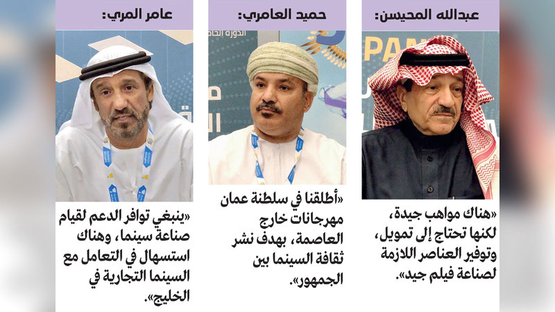 وفي هذا السياق أشار مؤسس ومدير مهرجان العين السينمائي الدولي عامر سالمين المري، إلى ضرورة توافر الدعم الحكومي لقيام صناعة سينما، إذ يسهم الدعم الرسمي في خلق وتكوين رؤية واستراتيجية واضحة لتطوير الإنتاج بمختلف مراحله، لافتاً إلى أن أزمة عدم توافر النصوص الجيدة أزمة عالمية ولا تقتصر على الخليج.