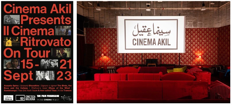 يمثل هذا التعاون مع سينما عقيل والمعهد الثقافي الإيطالي في أبوظبي حدثاً ثقافياً هاماً في الشرق الأوسط مع وصول جولة مهرجان " Il Cinema Ritrovato" للمرة الأولى إلى سينما عقيل مع 7 أفلام تراثية شهيرة، تم ترميم كل منها رقمياً بواسطة Cineteca di Bologna - مكتبة الأفلام في بولونيا في مختبرها (L’Immagine Ritrovata) المتطور.