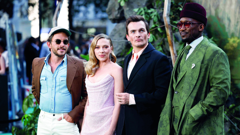 الممثلون جوناثان بيلي، وسكارليت جوهانسون، وروبرت فريند، وماهرشالا علي، على السجادة الحمراء خلال العرض العالمي الأول العالمي لفيلم «Jurassic World Rebirth» في العاصمة البريطانية لندن، وتدور أحداث القصة بعد خمس سنوات من أحداث فيلم «جوراسيك وورلد: دومينينس».