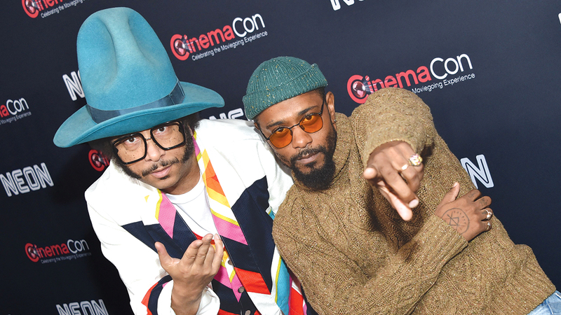 لاكيث ستانفيلد وبوتس رايلي خلال فعالية ترويجية لـ«أنا أحبّ اللصوص». أ.ف.ب