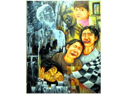 وتتعدد موضوعات لوحات المعرض الذي يختتم اليوم، وكذا أحجام لوحاته بين الصغيرة والمتوسطة والكبيرة، فيما تراوح الأسعار ما بين 1000 دولار و5000دولار. فما بين لوحة تحوي مجموعة غريبة من القطط الصغيرة محاطة بقطين سمينين للدكتورة آمنة النصيري، ووجهين آدميين متقابلين على خلفية مآذن تراثية ومدينة قديمة لمهدية أبو طالب، ورصد لوجوه مجموعة من النساء وثيابهن واللائي يقتربن بشفافيتهن اللونية إلى الفكرة عن الهيئة الملائكية المتخيلة. وكذلك رصد يقين الدليمي وجوها متباينة التعبير على 18 قطعة تشكيلية صغيرة، ورصدت سارة القاسمي لعلاقة أمومة بين بقرة وصغيرتها بألوان سادها الأبيض والأسود وغيرها من مقتنيات المعرض تباينات كثيرة، رصدها الفنان يوسف إبراهيم وآلف بينها في جدلية لوحة استأثرت باهتمام الحضور، يظهر فيها جزء من ملامح وجه بشري ركز فيه على لغة العين، فيما فاجأ المتذوق باستبدال مؤخرة الرأس محل الشق الأيمن من الوجه، في الوقت الذي تحتضن تلك المشهدية أياد متعددة، في ظل خلفية لونية شديدة التداخل،رصدت سماء معبأة بسحب حمر .
