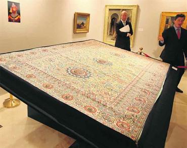 سجادة بارودا من الاعمال النادرة والفريدة في المزاد. تصوير: جوزيف كابللان