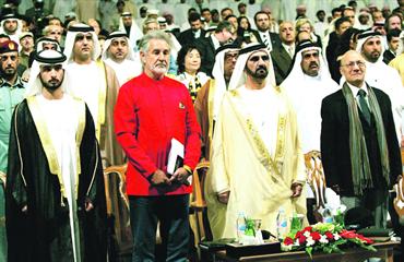 محمد بن راشد يتقدم نخبة شعراء العالم مفتتحاً « مهرجان دبي الدولي للشعر». تصوير: لؤي أبوهيكل
