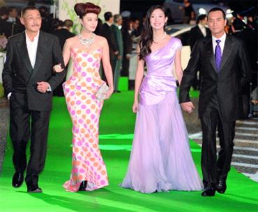 مجموعة من الفنانين الصينيين على السجادة الخضراء لمهرجان طوكيو السينمائي الدولي، الذي يختتم فعالياته اليوم في طوكيو، طاويا سجادته التي حاولت لفت الانتباه إلى القضايا البيئية، والاهتمام بالأرض وقضايا المناخ.
