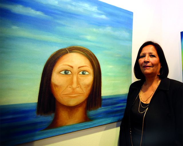قدمت شاكيرا مسعود في المعرض الذي يستمر حتى 31 مارس الجاري، خمس لوحات جسدت فيها، من خلال الوجه الذي يطفو على سطح الماء، كيفية هبوط الأرواح، حيث لجأت إلى الملامح لتصور المعاني الروحية، لاسيما في اللوحات التي استخدمت فيها الألوان الزيتية الزرقاء. وركزت مسعود على حوار الأنا والذات من خلال الوجه الواحد الذي رسمته بالحبر الأسود على الورق الأبيض، فالوجوه تتحدث مع نفسها، فيما أتاحت المساحة البيضاء التي خلفتها في هذه اللوحات فرصة كبيرة أمام المشاهد للتأمل في أبعد من حدود الوجه الذي يسبح في عالم من الصفاء.
