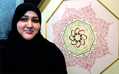 البقالي بدأت أولى خطواتها في فنون الخط العربي قبل 16 سنة. تصوير: أسامة أبوغانم