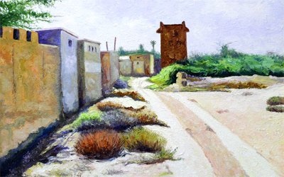 إحدى لوحات سرور التي تصور حياة البيئة الصحراوية. المصدر: وزارة الثقافة والشباب وتنمية المجتمع