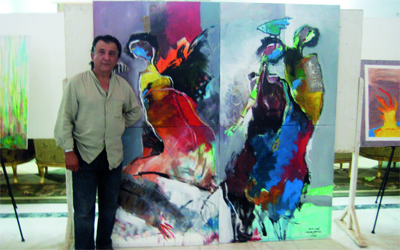 وكان بدور رسم لوحتين لبغداد، عبر فيهما عن الألم والخراب والحزن والقلق، خلال المهرجان الذي اختتم في السابع من اكتوبر الجاري، وشارك فيه نحو 30 فنانا من دول عربية واجنبية، من بينها مصر وسورية والجزائر والمغرب وايطاليا واسبانيا والدنمارك والسويد والمانيا وبولندا، وتضمن فعاليات تشكيلية وشعرية، اضافة الى عروض للفنون الشعبية.