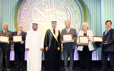 منصور بن زايد يكرّم الفائزين بجائزة الشيخ زايد للكتاب. من المصدر