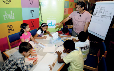 حضرت سموّ الشيخة بدور بنت سلطان القاسمي، المؤسس والرئيس التنفيذي لدار «كلمات» للنشر، ورشة الرسم التي أقامتها الدار للأطفال، مع الرسام محمود عبود فهمي، في منطقة ألعاب وأنشطة الأطفال بمركز المعارض «إكسبو» الشارقة، على هامش فعاليات معرض الشارقة الدولي للكتاب لمساعدة الأطفال على اكتشاف مواهبهم الفنية.