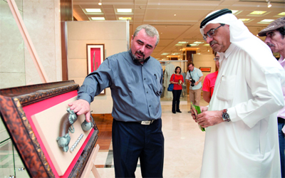 يخرج السياق هنا عن إبهار صيغة الأكبر والأطول والأضخم المتخمة بها موسوعة غينيس لتحطيم الأرقام القياسية، عندما يتعلق الأمر بمدلولات محيلة بشكل مباشر لرمزية شديدة الخصوصية، كما هي الحال بالنسبة لرمزية «السيف» في التراث العربي، فضلاً عن رمزية استدعائه ليعاضد الحرف العربي في ظل تحديات ثقافية وحضارية متبدلة، هي مجرد فكرة ضمن جملة أفكار كثيرة يبوح بها معرض «تغريدة السيوف»، للسوري الآتي من منطقة الجولان السورية المحتلة، والمنحدر من أصل شيشاني، عماد غالغاي، الذي قام بافتتاحه مساء أول من أمس، في مؤسسة العويس الثقافية أمين عام المؤسسة، عبدالحميد أحمد.
