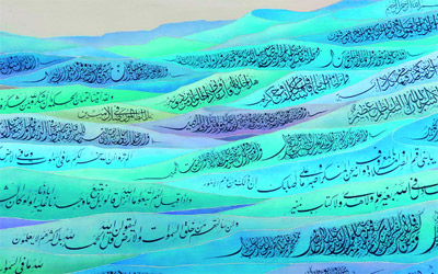 لوحة «سورة لقمان» للخطاط الياباني فؤاد كوئيتشي. من المصدر