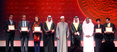 هزاع بن زايد وشيخ الأزهر والفائزون بالجائزة. وام