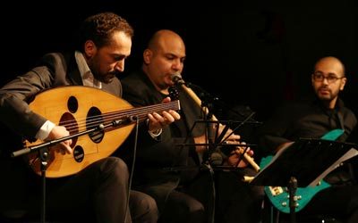 الفنان العراقي نصير شمة أحد أبرز عازفي العود في العالم أحيا العرض الرئيس الأول للمهرجان. من المصدر