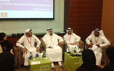 ناشرون إماراتيون خلال ندوة «فتح الأبواب.. مبادرة أنشر». من المصدر