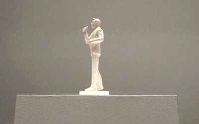 واختار حوراني أن يضع على مدخل المعرض أحدث اعماله الفنية، وهي عدد من تماثيل الشمع صغيرة الحجم للفنان الفلسطيني صاحب لقب محبوب العرب محمد عساف.