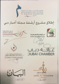 أعلنت مؤسسة محمد بن راشد آل مكتوم، بالتعاون مع هيئة دبي للثقافة والفنون، دعمها لمشروع «أرشفة مجلة أخبار دبي إلكترونياً»، الذي أطلقته مكتبة ومجلس جمال بن حويرب للتراث والتاريخ، بالشراكة مع بلدية دبي، وغرفة صناعة وتجارة دبي، وصحيفة البيان، وندوة الثقافة والعلوم. ومن خلال هذا المشروع ستقوم «المكتبة» بعملية الأرشفة، وإصدار قرص مدمج يوثق كل أعداد المجلة إلكترونياً.