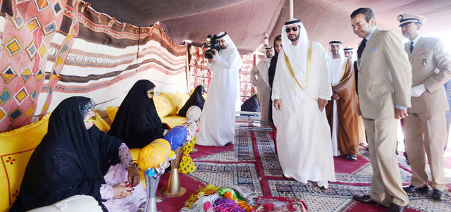 وكان سموّ الشيخ حمدان بن زايد آل نهيان، قد اطلع في بداية الزيارة التي رافقه خلالها سموّ الشيخ نهيان بن زايد آل نهيان، رئيس مجلس أمناء مؤسسة زايد بن سلطان آل نهيان للأعمال الخيرية والإنسانية، والأمير مولاي رشيد شقيق العاهل المغربي، على أجنحة خيمة الإمارات التراثية، وتعرف إلى فعاليات الخيمة التراثية التي تتضمن ورش عمل يتم خلالها عرض الحرف الإماراتية. كما زار سموّه الخيام المغربية التي تعبّر عن تراث القبائل الصحراوية المغربية، كما شهد جانباً من عروض للفروسية.