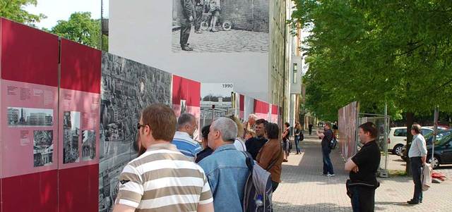 وفي الوقت الحاضر يضم مركز التوثيق بين أركانه معرضاً يزخر بصور تاريخية تبين كيف تم سد بوابة براندنبورغ بالأسلاك الشائكة في أغسطس 1961، وكيف احتج سكان برلين ضد بناء الجدار، وكيف كان الأقارب والمعارف يمدون أيديهم لبعضهم بعضاً فوق الحواجز والمتاريس بينما يعلو اليأس وجوههم.