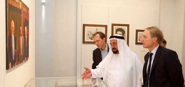 حاكم الشارقة اصطحب الضيوف في جولة شملت الجامعة الأميركية والمدينة الجامعية ودارة الدكتور سلطان القاسمي للدراسات الخليجية. من المصدر