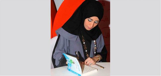 همسة يونس خلال توقيع كتابها الجديد. من المصدر