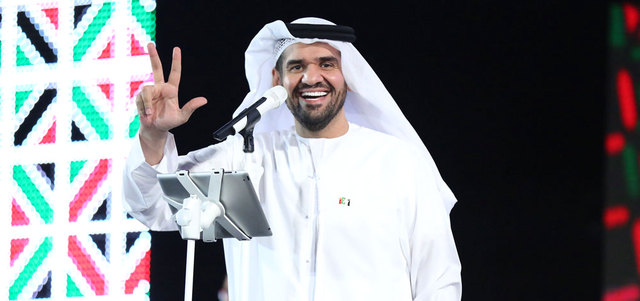 ضمن احتفالات دولة الإمارات باليوم الوطني الإماراتي الـ43، ووسط استقبال حافل تخلله إطلاق الألعاب النارية في استاد هزاع بن زايد بمدينة العين، أطلق الجمهور الذي تخطى 4000 شخص بين الصغير والكبير، هتافات الترحيب الكبيرة بالفنان الإماراتي حسين الجسمي «السفير فوق العادة للنوايا الحسنة»، الذي اعتلى المسرح بعد أن قدمه الإعلامي الإماراتي سعود الكعبي، مرحِّباً بالحضور ومهنئاً الجميع بالذكرى الوطنية لاتحاد الإمارات، اليوم الذي ينتظره كل إماراتي ومقيم على أرضها ليعيش فرحة التطور والمراكز الأولى في جميع الميادين، بعبق ماضي الأجداد والتراث الذي صنعته أياديهم.