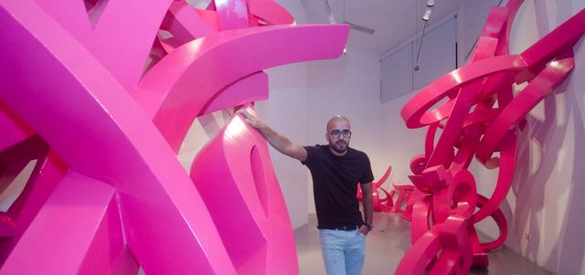 من حروف اللغة العربية يستلهم فنان الغرافيتي التونسي إل سيد أعماله، فيصيغ الحروف ضمن أشكال انسيابية ومتداخلة تأخذ تكويناً يجعلها تبدو كما الشلال الذي يتساقط من أعلى السقف حتى الأرض. يتلاعب الفنان على جمالية شكل الحروف وطواعيتها في التمدد والانحناء ليقدم حوارية بين اللغة والشكل والشعر. وقد تنازل في معرضه الذي اختتم أخيراً في مركز «تشكيل» عن ثنائية اللوحة، حيث جسد عشقه وشغفه باللغة واحتفى بالحرف من خلال مجسمات ضخمة للحروف تمتد من الأرض إلى الجدران والسقف.