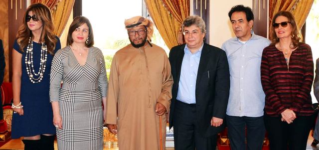 سلطان بن زايد يتوسط عدداً من الفنانين والإعلاميين الضيوف. من المصدر
