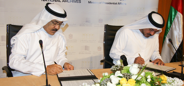 ووقع المذكرة بمقر الأرشيف الوطني في أبوظبي الدكتور عبدالله الريس مدير عام الأرشيف الوطني، ووقعها من الجانب البحريني الدكتور الشيخ خالد بن خليفة آل خليفة نائب رئيس مجلس الأمناء، المدير التنفيذي في مركز عيسى الثقافي.