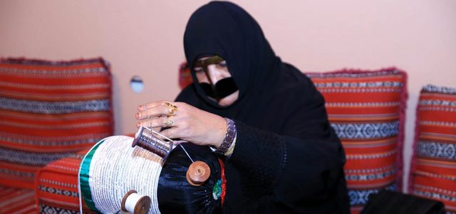 «أم محمد » خلال حياكة «التلي». من المصدر