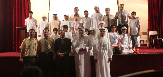 الفريق المسرحي لنادي الشارقة بعد عرض مسرحيته. من المصدر