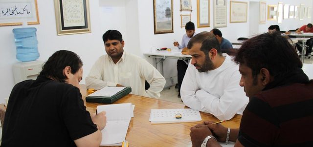 مركز الشارقة للخط يشرف على تدريب المنتسبين. من المصدر