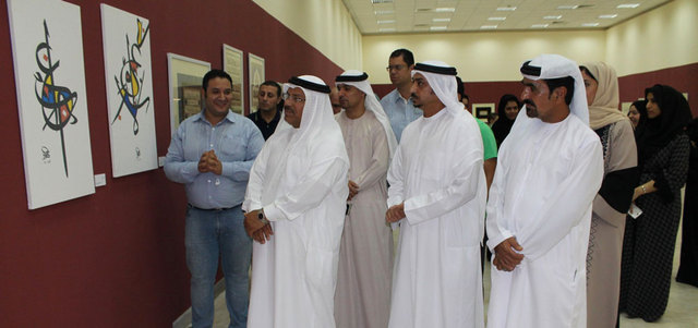 خلال افتتاح المعرض بقاعة معارض المركز الثقافي في خورفكان. من المصدر