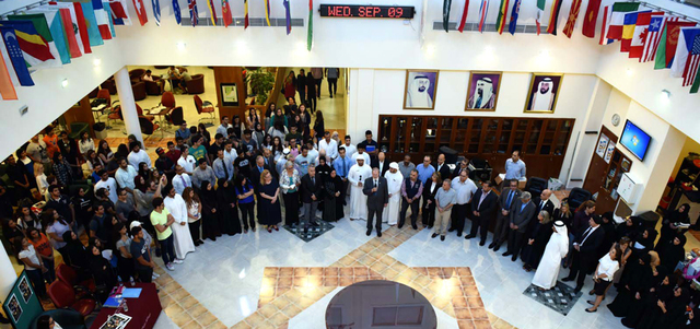 وكان المجلس الطلابي والنادي الثقافي الإماراتي في الجامعة، قد دعوا مجتمع الجامعة من طلبة وأساتذة وإداريين وأسرهم لتحية أرواح شهداء الوطن واستجاب الجميع للنداء، حيث وقفوا جميعاً لحظة صمت حداداً على أرواح الشهداء وأعربوا عن تعازيهم لأسر الشهداء البواسل.