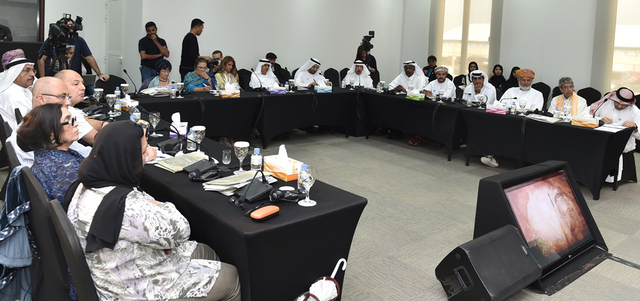عرض مشاركون في ندوة الطاولة المستديرة تجاربهم وشهاداتهم في موضوع الحكاية والرواة وجمع الحكاية الشعبية، وكبار السن الذين يحفظون مختلف القصص والحكايات الشعبية، ضمن فعاليات ملتقى الشارقة الدولي للراوي في نسخته الـ15 في معهد الشارقة للتراث، أمس.