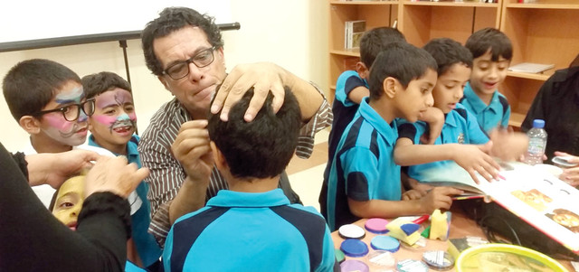 نظم مركز الذيد للفنون، التابع لمجمع الشارقة للآداب والفنون، ورشة أمس، بعنوان «الرسم على الوجه» في مقر المركز، تدرّب خلالها عدد من طلاب مدرسة الوادي للتعليم الأساسي على كيفية الرسم على الوجه، ثم رسم وداد ثامر، المشرف على الورشة، أشكالاً مختلفة بالألوان على وجوه الطلاب، وذلك في مقر المركز في الحمرية.