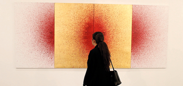 على مقربة من لوحات الفنان، عبدالقادر الريس، التي يعرضها «هنر جاليري» في «فن أبوظبي»، يعرض الجاليري أيضاً أعمال الفنانة الدكتورة، نجاة مكي، التي تقدم وجهاً آخر من وجوه الحياة بعيداً عن الحرب ومآسيها، ملتزمة أسلوبها الفني الذي يحمل قدراً عالياً من الروحانية والشفافية، حيث فاضت لوحاتها بألوان مبهجة، مثل الأزرق والأخضر، وهما لونا الخير والأمل اللذين يتمناهما الجميع للوطن على الدوام. |