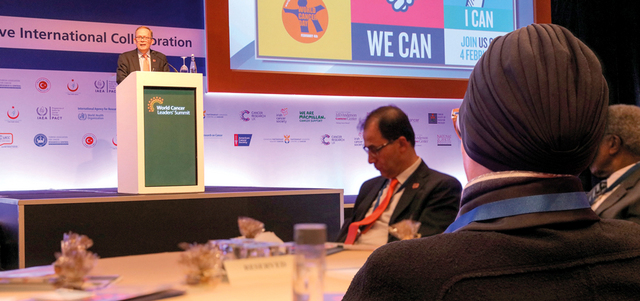 دعت قرينة صاحب السموّ الشيخ الدكتور سلطان بن محمد القاسمي، عضو المجلس الأعلى حاكم الشارقة، سموّ الشيخة جواهر بنت محمد القاسمي، الرئيس المؤسس لجمعية أصدقاء مرضى السرطان، سفيرة الاتحاد الدولي لمكافحة السرطان للإعلان العالمي للسرطان، سفيرة الاتحاد الدولي لمكافحة السرطان لسرطانات الأطفال، إلى وضع أولويات واستراتيجيات للبحث العلمي الدولي المشترك وتكثيفه، ومشاركة المعلومات والمستجدات الخاصة بمرض السرطان على المستوى الدولي، وتعزيز التعاون بين المؤسسات الحكومية والمدنية في دول العالم كافة، لتمكين برامج الصحة العامة التوعوية من تعزيز دورها في الوقاية، والكشف المبكر عن السرطان بكل أنواعه. وأكدت خلال مشاركتها في القمة العالمية لقادة مكافحة السرطان، التي اختتمت أعمالها، أخيراً، في إسطنبول بتركيا، أهمية توفير مراكز عالمية مشتركة لإعداد برامج للأبحاث العلمية الخاصة بالسرطانات، وإقامة شبكة علاقات وتعاون بين المنظمات غير الحكومية والمجتمعات المدنية في تطبيق البرامج الوطنية لمكافحة السرطان، من خلال وضع آليات للتعاون مع المؤسسات الصحية المعنية بذلك. وقالت: «يجب أن تتصدر برامج المكافحة والوقاية من السرطان التوجهات والأجندات الخاصة بالدول والمجتمعات المدنية والأفراد أيضاً، لما لهذا المرض من بُعد اجتماعي وإنساني وعبء صحي واقتصادي كبير، نظراً لتنامي الإصابة به بين الأفراد في المجتمعات كافة».