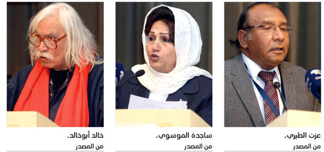 افتتحت قراءات الأمسية الشاعرة شيخة المطيري بقصائد تعكس جانباً من تجربتها في كتابة قصيدة التفعيلة، وتعلن عن جديدها الشعري الذي تستعد لإصداره قريباً، فألقت عدداً من القصائد التي تلمس الجرح العربي، وتقترب إنسانياً من جملة التفاصيل اليومية العالقة في ذاكرة الحرب والخراب، فقالت في قصيدة بعنوان «هل يطمئن الجوع»: