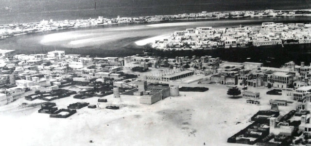 صورة لمدينة دبي القديمة والتي شهدت تحولات مدنية ومعمارية هائلة في العقود القيلة الماضية ارشيفية