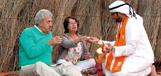 من «القهوة»؛ التي تشغل مساحة في مدخل منطقة الواحة، ولتقدم لزوار المهرجان القهوة الإماراتية الأصيلة في أجواء عصرية مريحة، بدأت الجولة الإعلامية التي نظمتها هيئة أبوظبي للسياحة والثقافة، مساء أول من أمس، لعدد من وسائل الإعلام العربية والأجنبية في أرجاء المهرجان، إذ شاهد الإعلاميون الطريقة التقليدية لإعداد القهوة، مع شرح عن أهمية هذا المشروب الذي يمثل رمزاً للكرم والحفاوة بالضيوف، ومن دونه لا تكتمل مجالس العرب أو أركان الضيافة الأصيلة، بالإضافة إلى التعريف بالعادات والتقاليد المرتبطة بإعداد القهوة وتقديمها؛ مثل ضرورة تقديمها ساخنة، إذ يعد تقديمها باردة عيباً واستهانة بالضيف، وآداب تقديم القهوة في المجلس، مثل أن يتم التقديم للشيوخ في البداية، ثم كبار الشخصيات، وإذا لم يكن هناك شيوخ في المجلس، يبدأ التقديم من اليمين.