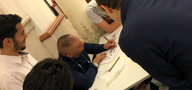 نظم برنامج «كتاتيب» في دائرة الثقافة والإعلام في الشارقة ورشة «جماليات الخط العربي»، صباح أمس، بمسجد النور على بحيرة خالد في الشارقة. أشرف على الورشة الخطاط مصطفى عبدالقادر الذي قدم شرحاً عن طريقة كتابة الحروف العربية، واتخذ خط الثلث أنموذجاً للكتابة والتدريب، لما يتميز به من مكانة بين الخطوط الأخرى، فإتقان الخطاط لهذا الخط ينقله إلى مرحلة الاحتراف والتميز بين أقرانه، وفق المشرف، الذي أضاف أن «المشاركين تدربوا على كتابة الحروف العربية، وقياس الخط بطريقة التنقيط، مع رموز الحركات في نظام واحد أعطى للخطِّ العربي شكله الجميل الذي نعرفه حالياً، وكتب كل مشارك بحسب نظرته عبارات بخط الثلث». يذكر أن برنامج «كتاتيب» انطلق منذ عامين، ويهدف إلى تعليم الخط العربي في مساجد الشارقة، واستقطاب أكبر شريحة ممكنة من الشباب لتعلم الخط العربي.