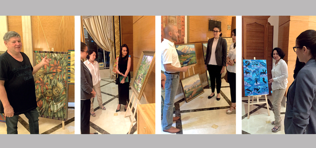 يضم المعرض الذي تنظمه «بن ماضي للسفريات» 16 فناناً من دول مختلفة، منها كازخستان وأوزبكستان وكرجستان وروسيا وطاجيكستان، وجميعهم غير مقيمين في الإمارات، لكن الشركة المنظمة استضافتهم للتعرف إلى ثقافة الإمارات، وعرض أعمالهم الفنية للمجتمع، على أن ينتقل المعرض إلى الخالدية مول لمدة ثلاثة أيام، لإتاحة الفرصة لأكبر قدر من الجمهور لمشاهدته والتفاعل مع الفنانين الذين سيوجودون خلال فترة المعرض بالأزياء التقليدية لدولهم.