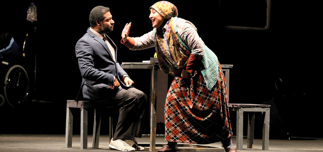 بدا العرض كأنه عبارة عن لوحات مشهدية يديرها «الدراماتورج»، بين المرأة التي فقدت ابنها بسبب الحرب، والرجل الذي فقد ابنه في تلك الحرب، وعلى الرغم من حاجز اللغة بينهما إلا أن الحوارات استمرت، كما استمر حضور الدراماتورج، وسلطته المتخيلة على المسرح.