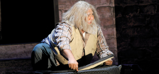 عندما يظهر الرجل العجوز على خشبة المسرح يشاهد تلك الحقيبة التي كانت في العربة وأنزلها صاحب العربة هنا، فيحاول الاقتراب منها، يخاف بعض الشيء، وتدور الحكايات في داخله، هل يفتحها أم لا: لعل فيها بعض الأشياء التي طالما حلم بها، لعل ما فيها هو نتيجة طبيعية لتلك الدعوات التي طالما كررها بشكل يومي، يمسك بها، وأخيراً يقرر فتحها، فإذا بها لا تحوي إلا ملابس، لا تناسبه أيضاً، ومع ذلك يصرّ على الاستحواذ عليها، لكن الشاب يحاول إقناعه بأنها له، أحضرها معه ولديه شاهد على ذلك هو صاحب العربة.