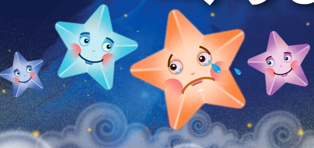 ذات ليلة صافية، جلست نجمة على حافة غيمة.. تنظر إلى الأسفل طَوال الوقت، ولا تفعل شيئاً آخر. لكنها كانت تحاول أن تبدو حزينة.