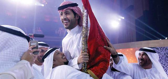 وقام سمو الشيخ نهيان بن زايد آل نهيان، رئيس مجلس أمناء مؤسسة زايد بن سلطان آل نهيان للأعمال الخيرية والإنسانية، بتتويج الفائزين على مسرح شاطئ الراحة، مساء أول من أمس، وسط حضور كبير. وسلّم بيرق الشعر للحميداني، بالإضافة إلى جائزة قدرها خمسة ملايين درهم (مليون و360 ألف دولار)، بحضور رئيس لجنة إدارة المهرجانات والبرامج الثقافية والتراثية بأبوظبي، اللواء ركن طيار فارس خلف المزروعي، ومدير إدارة السياسات والمشاريع الخاصة في لجنة إدارة المهرجانات والبرامج الثقافية والتراثية عيسى سيف المزروعي، وأعضاء لجنة التحكيم، سلطان العميمي، ود. غسان الحسن، والشاعر حمد السعيد، وعضوي اللجنة الاستشارية تركي المريخي وبدر الصفوق. وحصلت الكويت على المركز الثاني، وفاز به الشاعر سعد بن بتال السبيعي وجائزة قيمتها أربعة ملايين درهم، بينما ذهبت المراكز الثلاثة الباقية للمملكة العربية السعودية، فحصل الشاعر محمد السكران على الجائزة الثالثة ومبلغ ثلاثة ملايين درهم، والشاعر عبدالمجيد الذيباني في المرتبة الرابعة وجائزة قدرها مليونا درهم، وحصل الشاعر خزام السهلي على المركز الخامس وجائزة مليون درهم. وحلّت الشاعرة الإماراتية زينب البلوشي في المرتبة الأخيرة وحصلت على جائزة قيمتها 600 ألف درهم.