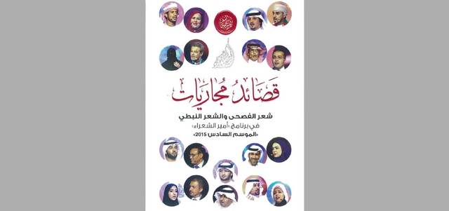 عن أكاديمية الشعر في لجنة إدارة المهرجانات والبرامج الثقافية والتراثية، صدر ديوان «قصائد مجاريات.. شعر الفصحى والشعر النبطي»، الذي يضم 18 قصيدة فصحى، ومثلها من الشعر النبطي، ألقاها شعراء ضيوف، خلال حلقات الموسم السادس من برنامج «أمير الشعراء» 2015.