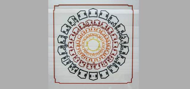 الخطاط الإماراتي خالد الجلاف قدّم بيتاً من الشعر لصاحب السمو الشيخ محمد بن راشد آل مكتوم، نائب رئيس الدولة رئيس مجلس الوزراء حاكم دبي، وهو «بيني وبين الوطن عهد وبوفي به، وأنا معاهد بلادي ان أعليها»، بتصميم يحاكي فيه شعار إكسبو 2020، من حيث الشكل واللون، فاستخدم الخط الكوفي، ومنحه التراكيب الهندسية المأخوذة من العمارة، ليشكل النص في حوارية بين الكتابة والفراغ. ولفت إلى أن اختياره لهذا البيت أتى كونه يدل على عهد سموه لرفع شأن البلاد، فيما التصميم أتى محاكياً لهذه الرفعة ويحمل مفهوم التحدي والوعد والعهد. وقال إن «التراكيب الهندسية لم تختف من لوحاتي في هذا المعرض، فلا يمكنني الخروج عن هويتي، بل أحاول الدمج بين الواقع والنصوص والشكل، فالشعار الذي اخترته يؤكد أصالة دبي، وقدم التاريخ». وشدد الجلاف على أنه طوع النص والهندسة والخط، مبيناً وجود خطوط مطواعة، وخطوط ذات طبيعة جادة وتعتمد على القاعدة. وأشار الى سعيه المتواصل للتجديد والتطوير، وإيجاد اللون وإبراز قدرات هذا الفن في جذب جميع الأطراف حتى من لا يفهمون الكلام. وأثنى الجلاف على رعاية المعرض من جهة غير ثقافية وبعيدة عن الخط، مشيراً الى ان التعاون مع جهات لا ترتبط بالفن يؤكد أن الخط يخرج الى حيث الناس، وتتبوأ الإمارات اليوم مرتبة مهمة في فن الخط العربي، ووجود هذه المعارض دليل النجاح، ودليل على أن الخط لم يعد نخبوياً. وشدد على أنه كخطاط يستغل الشهر الكريم في قراءة القرآن، وغالباً ما يختار النصوص المقدسة والروحانية والقرآنية في هذا الشهر، ويقدمها في مرحلة لاحقة، فالشهر يمثل فترة تأمل.